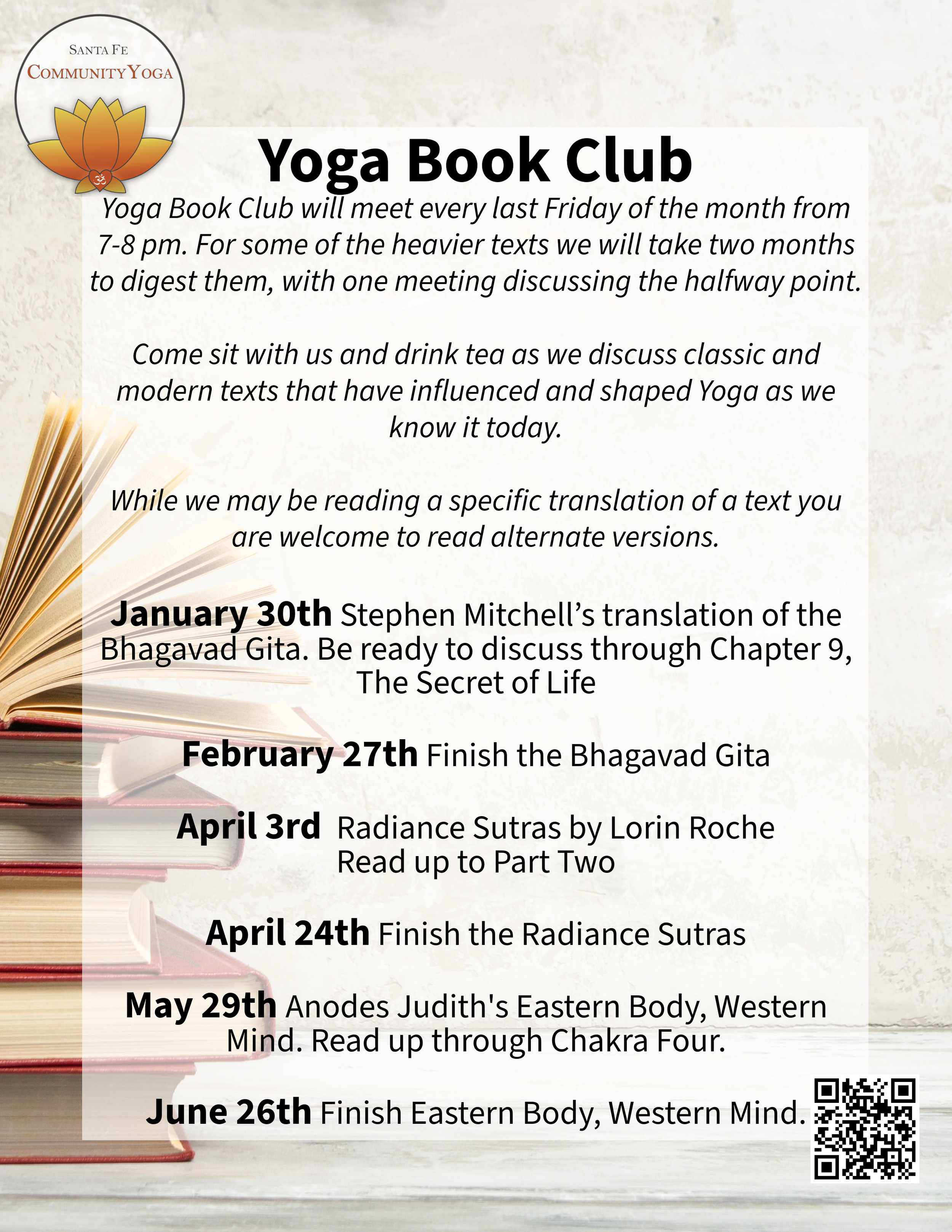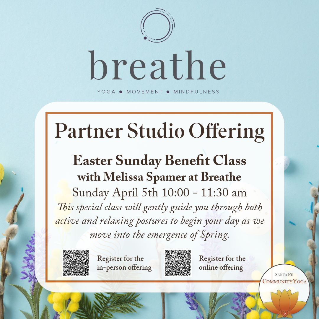 Join the Peace Within Peace Between Project for a 90-minute engagement with meditation, laughter, and creative enjoyment. The Peace Project is the Santa Fe Community Yoga Center's most recent program, in collaboration with the City of Santa Fe's Division of Youth Services, aimed at addressing youth violence through yoga, meditation, and mindfulness. The Peace Project is an extension of the Yoga Centers' commitment to community and yoga in the belief that all are welcome, and sometimes that means going outside the studio walls and directly engaging.