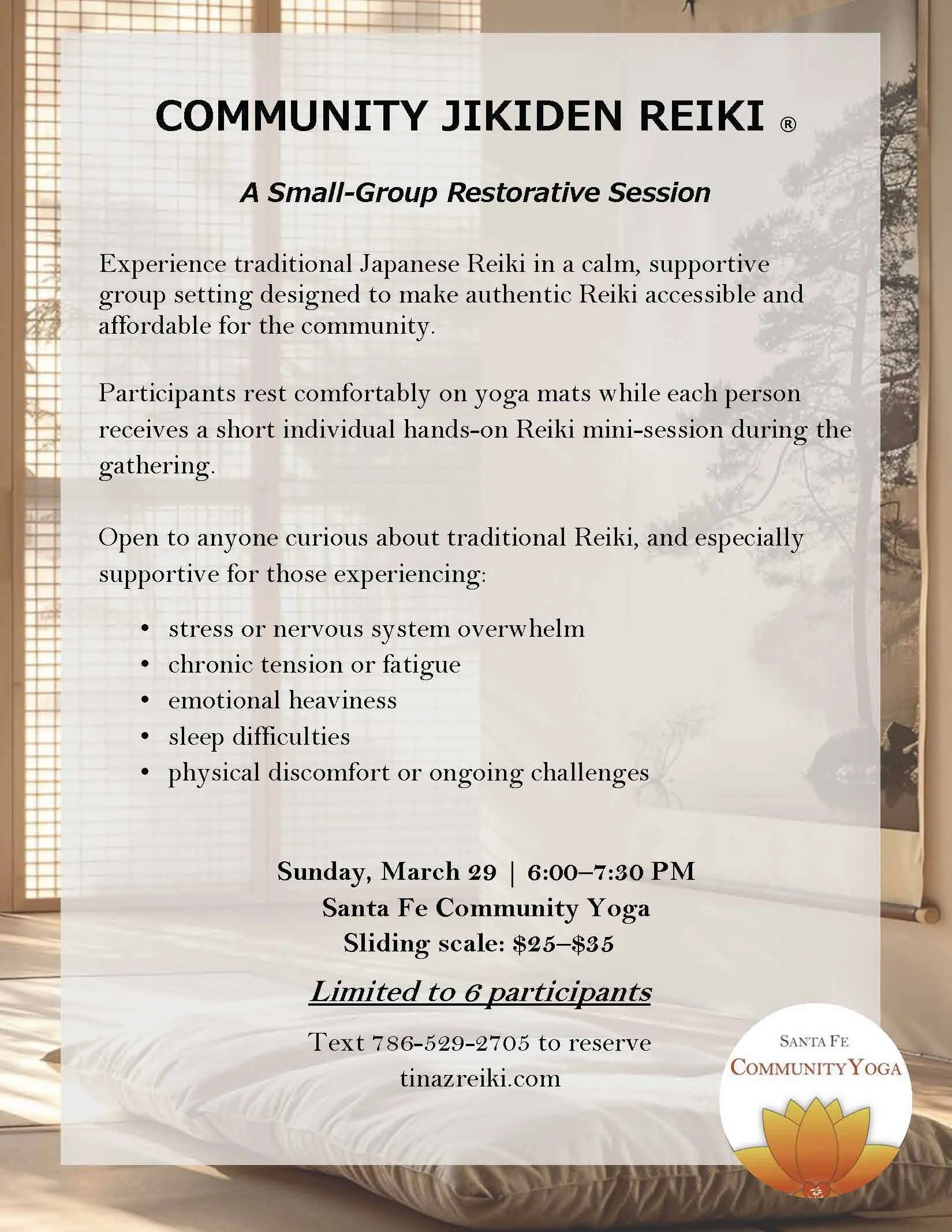 RSVP. Please contact Julia to reserve your spot or ask questions.